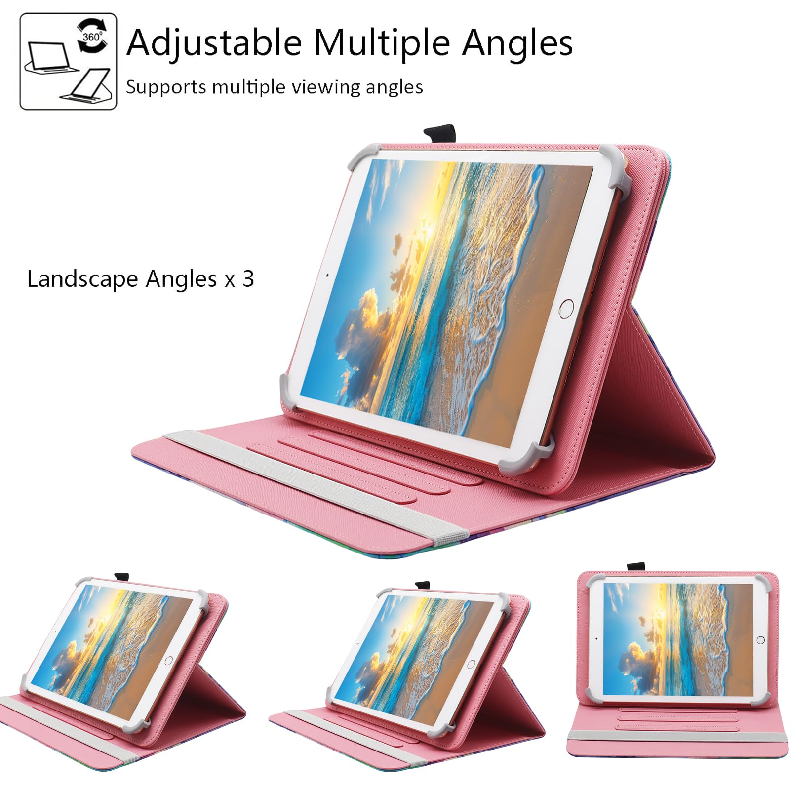 Adjustable Stand Angles Design: Multiple viewing angles stand function for easy reading and vedio-watching, the elastic band hold your tablet secure and convenient