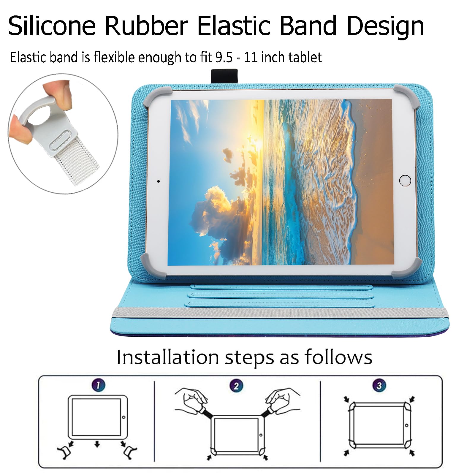 Elastic Band Design: Elastic band is flexible enough to fit all 9.5 - 10.5 inch tablet, strong elastic band holds your tablet firmly and keep your device in place safely, also compatible with amazon kindle fire hd 10 and hd 10 plus 10.1 inch tablet case