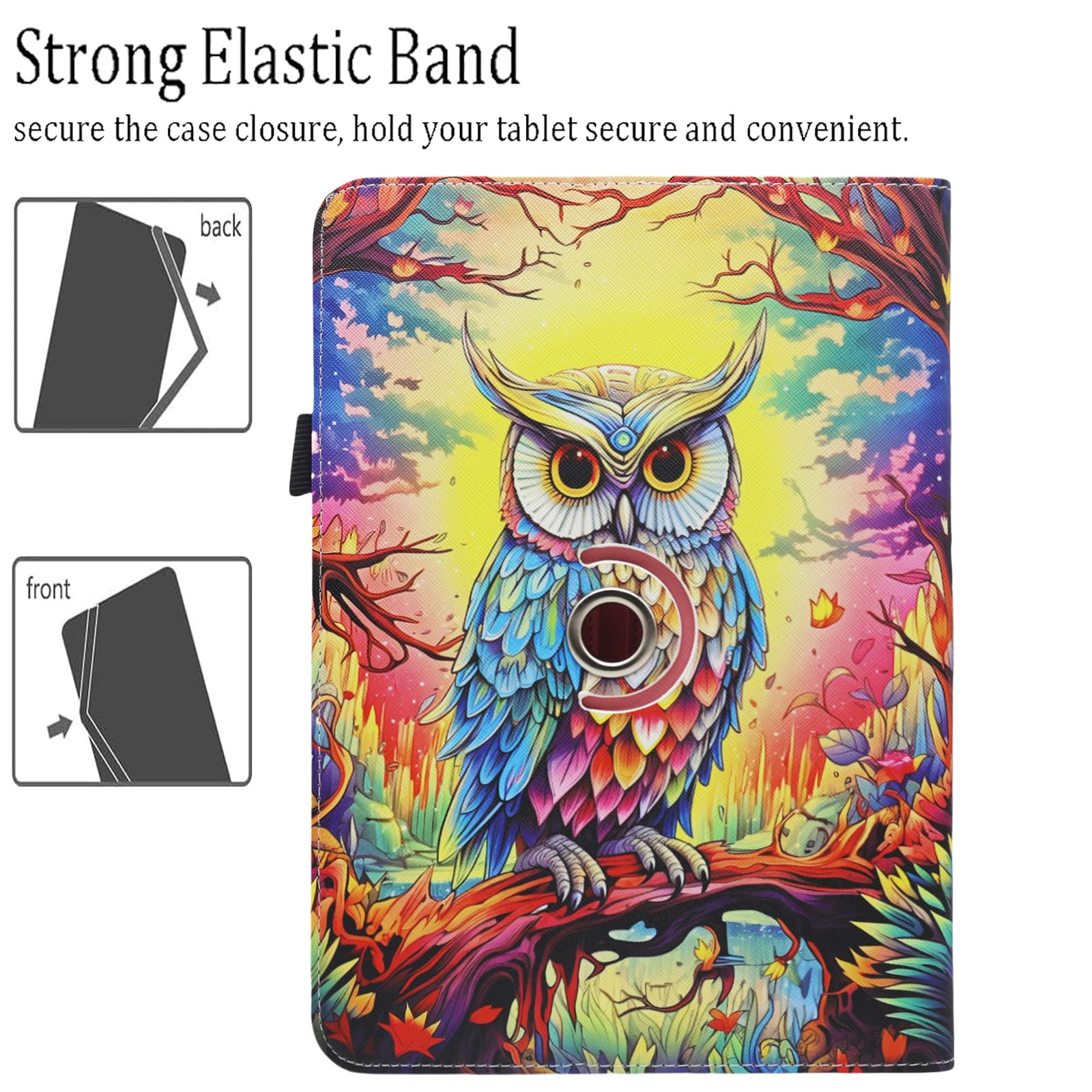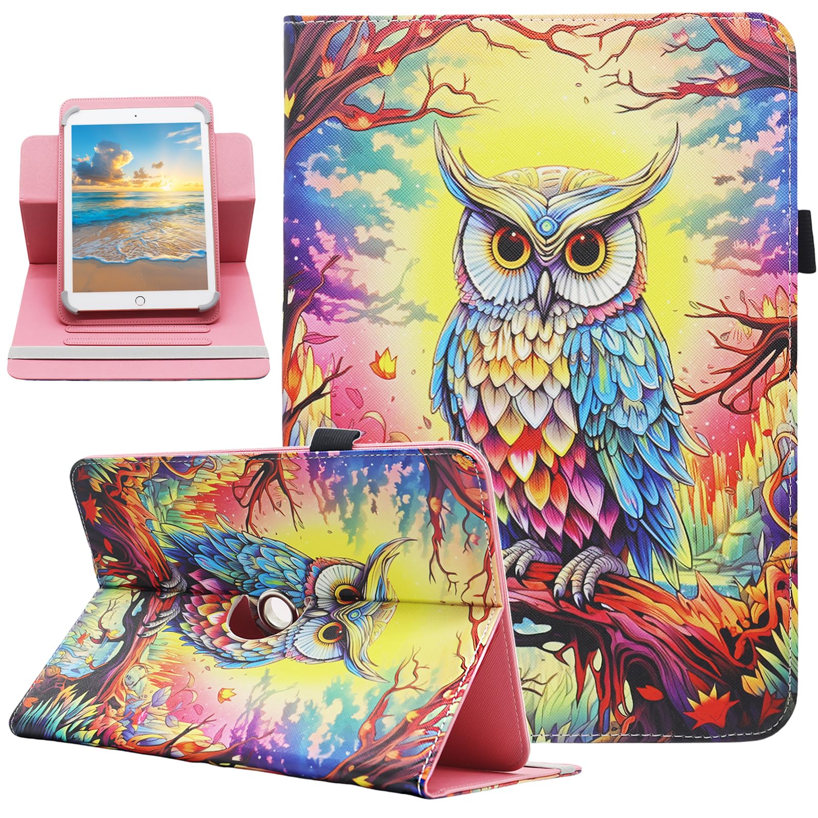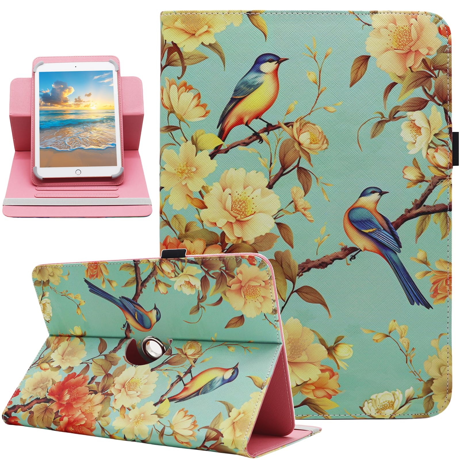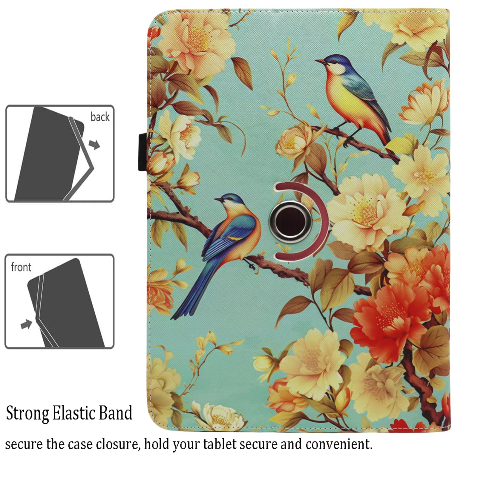 Universal 10 10.1 Inch Android Tablet Case, Dluggs PU Leather 360 Degree Rotating Multi-Angle Viewing Stand Case Cover for 10 10.1 and All 9.5-10.5 Inch Tablet, Bird