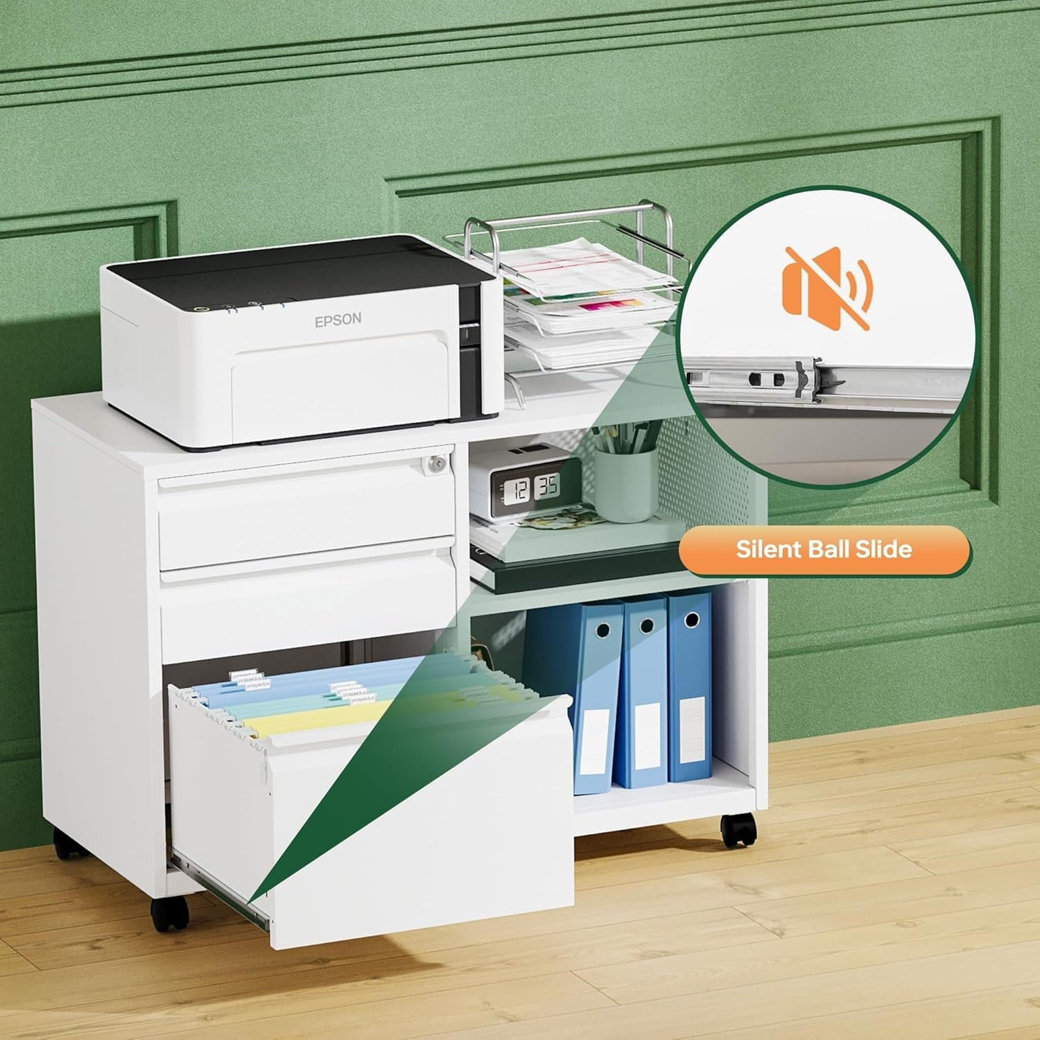 • 『Multifunctional Filing Cabinet』Lateral filing cabinet with open storage spaces, organization and storage drawers,holds printer stand and office craft storage,side hole panel design is beautiful and can hang items,modern delicate appearance ornamental to your office & home.