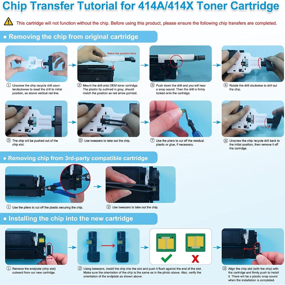 Compatible W2020A/W2021A/W2022A/W2023A Cartridge Of 414A 414X for HP We have over a decade of experience designing and manufacturing for compatible toner product all over the world, allowing us to offer compatible product for famous, top-line brands at truly amazing prices, straight to your doorstep! Compatible Toner Cartridge Replacement for: HP W2020A/W2021A/W2022A/W2023A 414A 414X NO Chip,with Tools Compatible Toner Cartridge Replacement for Printer: HP Color LaserJet M454 M454dn/M454dw HP Color LaserJet Pro MFP M479 M479dw/M479dn/M479fdw HP Color LaserJet Enterprise M455dn MFP M480 Pack of Items: 2-Pack Ink Color: Magenta Page Yield (based upon a 5% coverage of A4 paper): 2*2,100 Pages Cartridge Approx.Weight (Per Pack): 1.21 Pounds Cartridge Dimensions (Per Pack): 12.6 x 3.54 x 3.94 Inches Package Including: 2-Pack Toner Cartridge Why us? We has strict material inspection team and quality management team. Our products are under ISO9001, ISO14001, STMC, CE, RoHS certification and we guarantee that our products are premium, environmental-friendly, safe and harmless to human body.