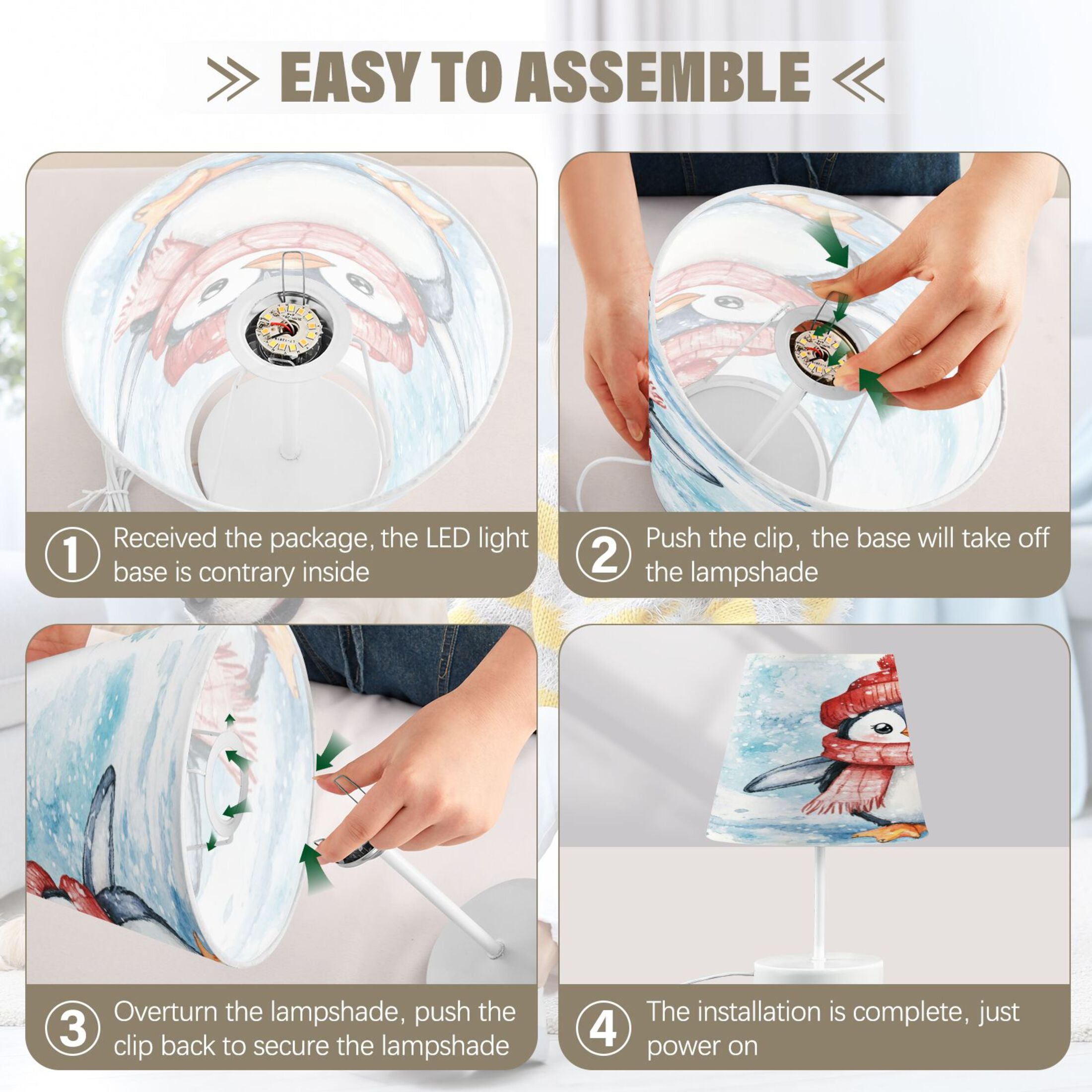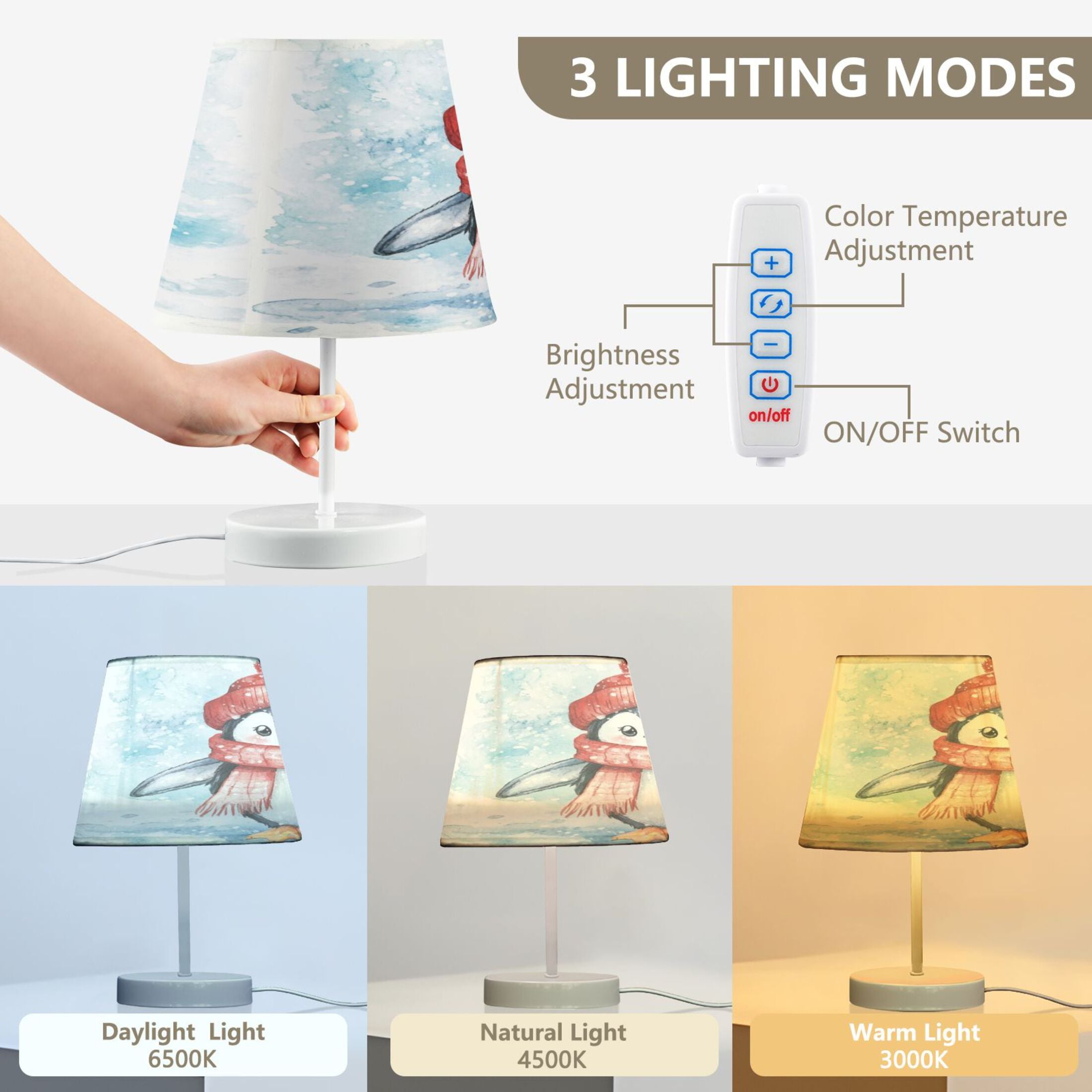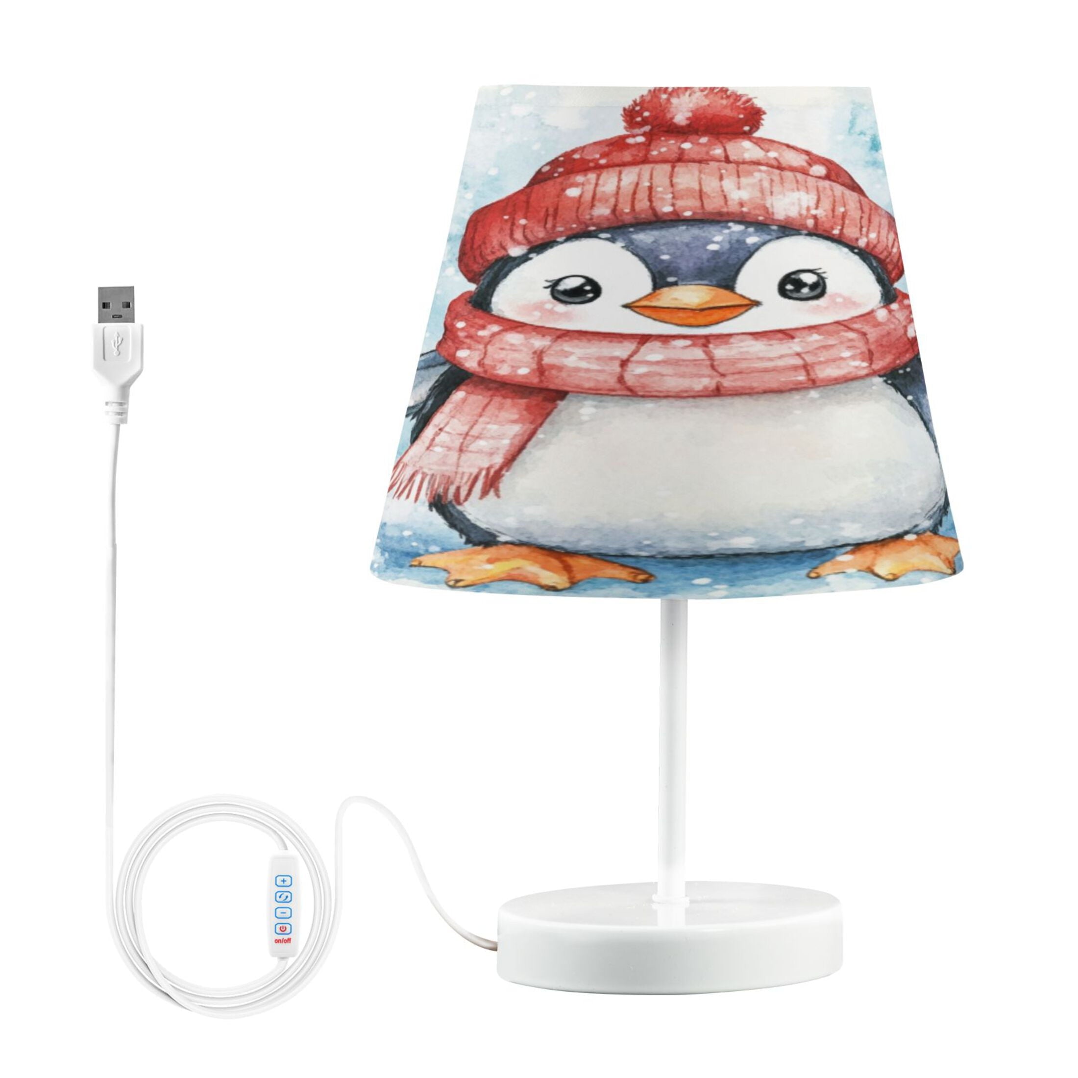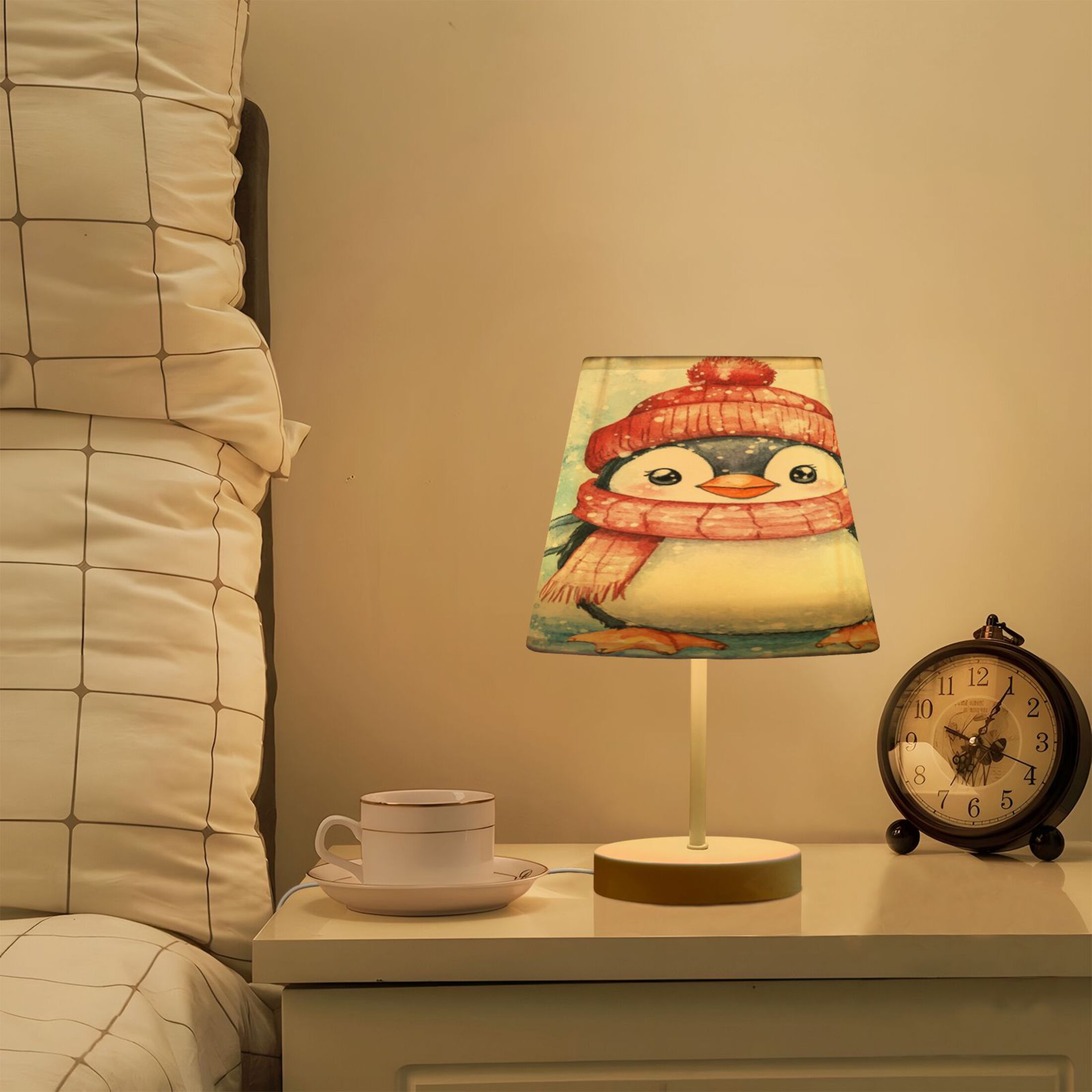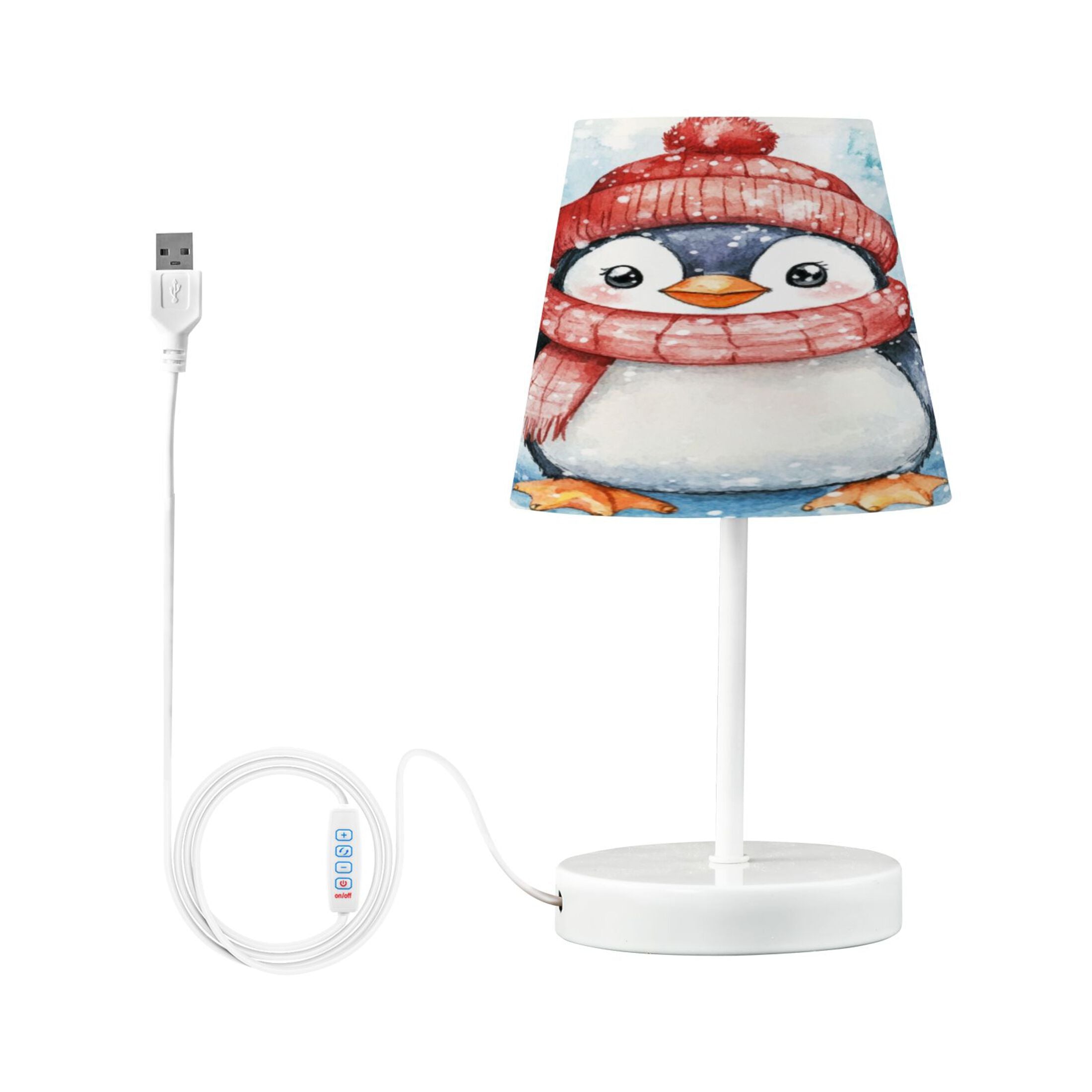 WOBOGO Red Scarf Penguin Pattern Table Lamps Bedroom 3-Speed Dimmable