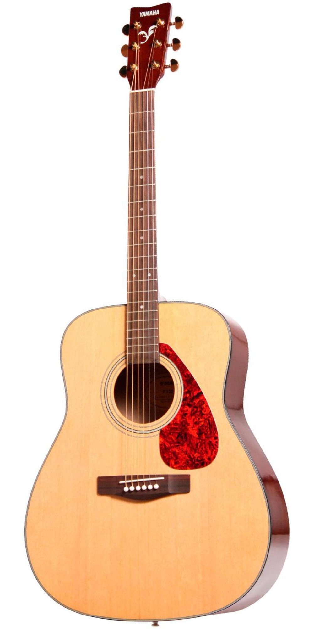 Yamaha's F335 gives you that classic dreadnought shape and sound at a price that won't break your bank. The F335's tone wood combination includes a laminate spruce top, rosewood fingerboard and bridge, and meranti back and sides. Gold die-cast tuners provide smooth and accurate tuning while a tortoise-pattern pickguard gives a bit more style. Case sold separately. Choose between Black, Natural or Tobacco Brown Sunburst.